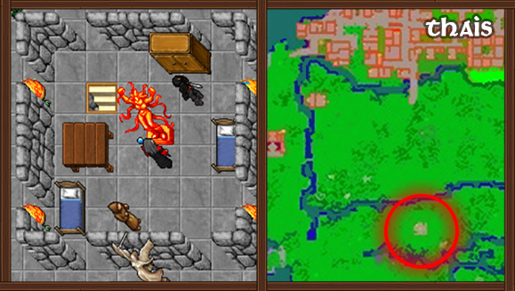 Bless StatueThe temple with the statue is located south of Thais in the place marked on the map. By clicking on the monument you buy all the blessings for 60K. If you have all the blessings, you lose less experience upon death and do not lose your backpack.